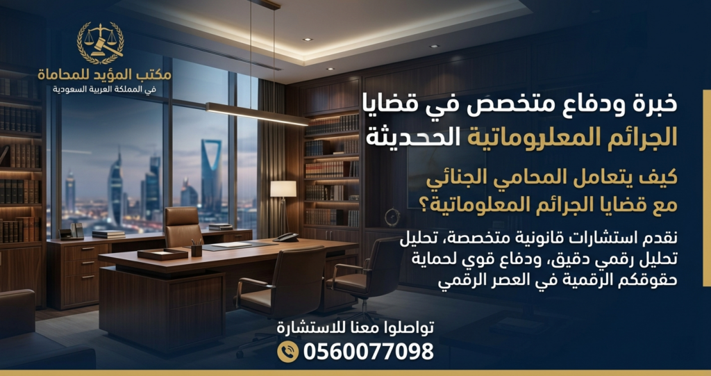 في هذا المقال التحليلي الشامل، سنسلط الضوء بتفصيل دقيق على كيفية تعامل المحامي الجنائي مع قضايا الجرائم المعلوماتية الحديثة، بدءاً من فهم الطبيعة الاستثنائية لهذه الجرائم، مروراً بمنهجية التعامل مع الأدلة الرقمية، وصولاً إلى استعراض أبرز الدفوع الجوهرية والثغرات النظامية التي يعتمد عليها المحامي لضمان محاكمة عادلة وحماية حقوق المتهمين، وذلك في ضوء التشريعات، وعلى رأسها الأنظمة المعمول بها في المملكة العربية السعودية.