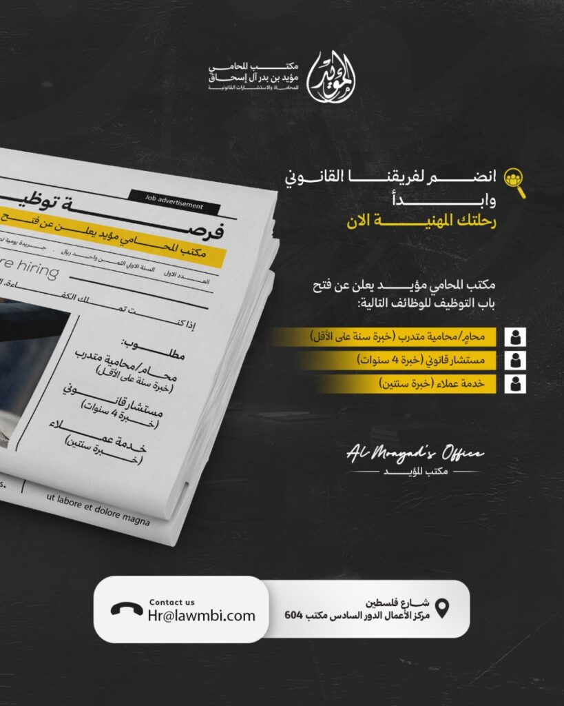 إرشادك في جميع مجالات القانون (تجاري، عقاري، أسري، عمل).